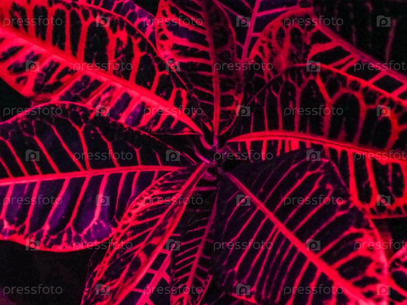 Выращивание листьев кротона под специальными искусственными светодиодными лампами с синим и красным спектром, благоприятными для растений с недостатком солнечного света