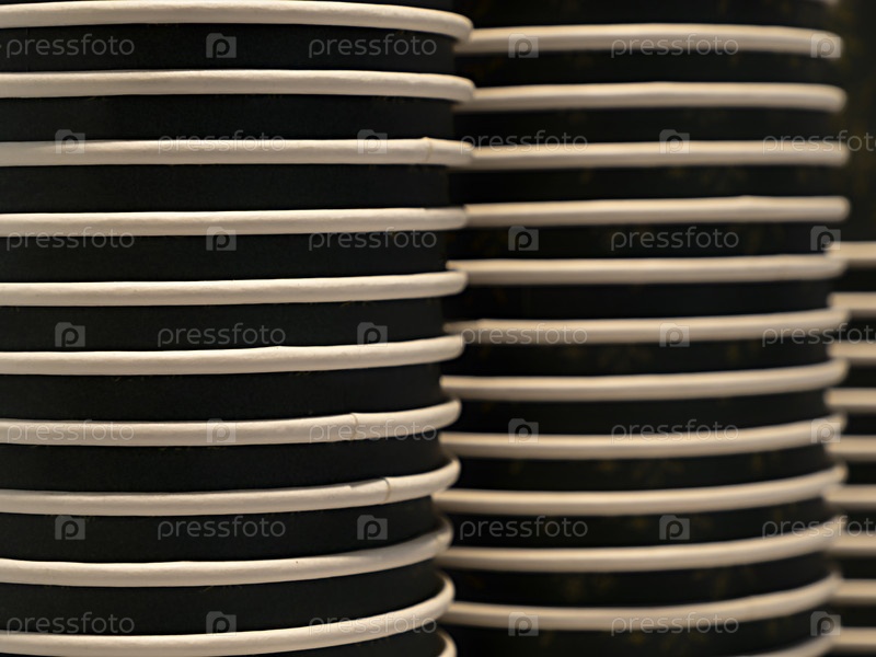 Стопки темных одноразовых бумажных стаканчиков на заднем плане