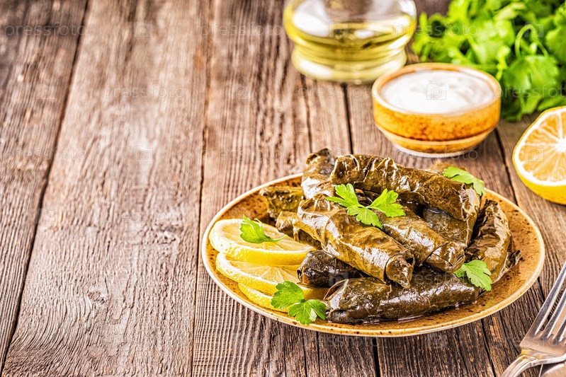 Долма, фаршированные виноградные листья с рисом и мясом