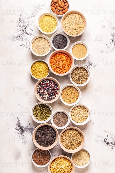 Набор различных суперпродуктов, вид сверху