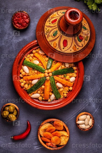 Овощной тажин с миндалем и кускусом из нута