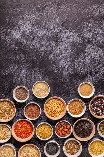 Набор различных суперпродуктов, вид сверху