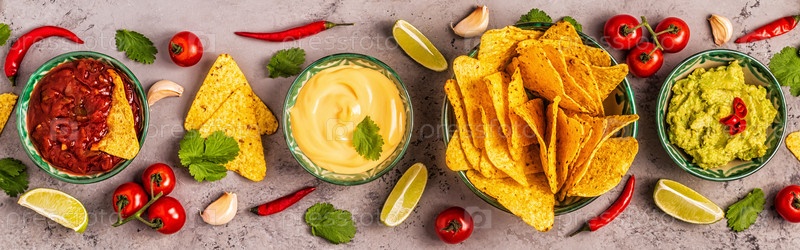 Мексиканская кухня: гуакамоле, сальса, сырные соусы с начос