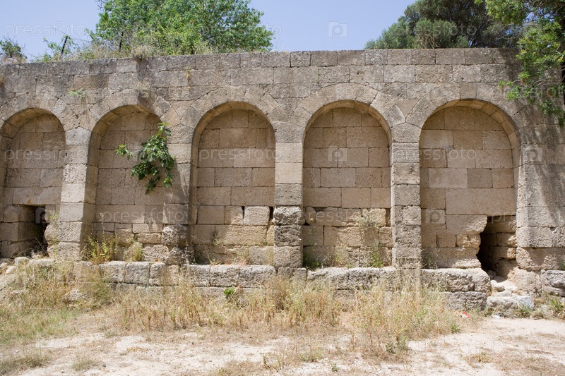 Стена с арками в акрополе города Родос, Греция