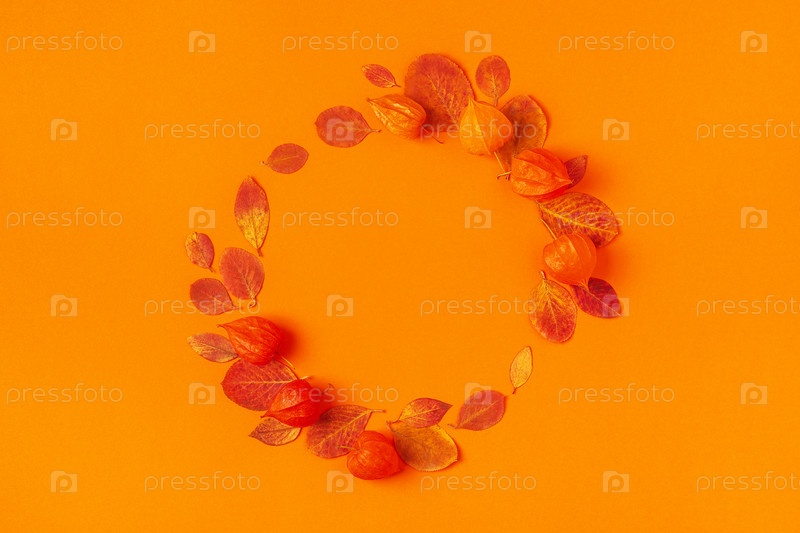 Осенние листья на оранжевом фоне