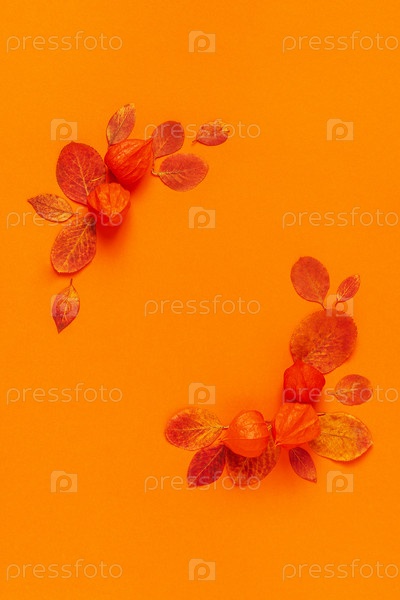 Осенние листья на оранжевом фоне