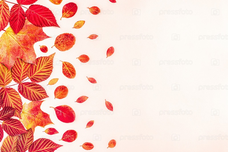 Яркие красные листья на пастельном фоне