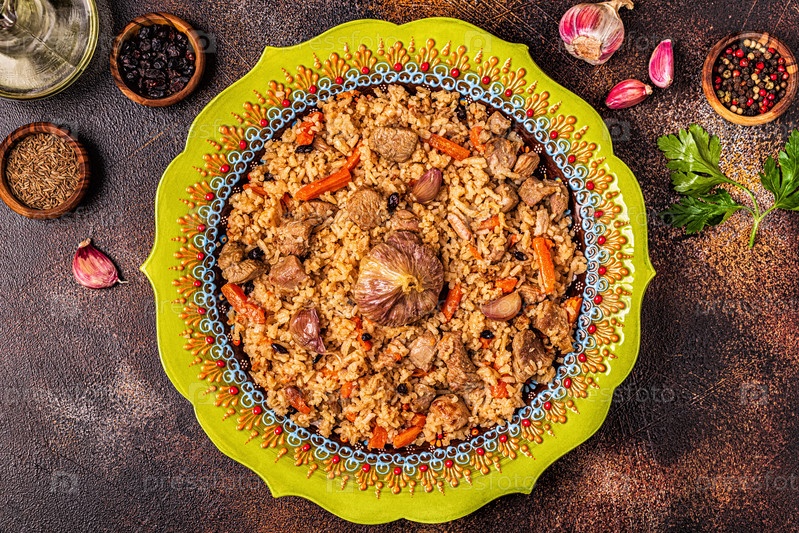 Плов с мясом, овощами и специями