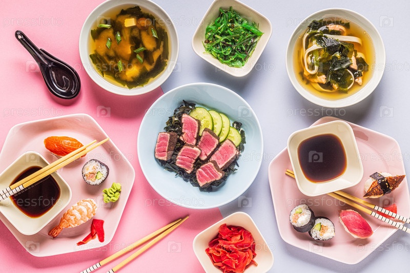 Стол с традиционной японской едой