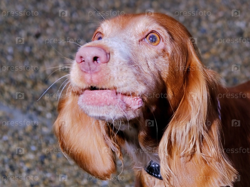 Портрет русского рыжего спаниеля с преданным взглядом
