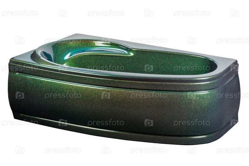 Угловая акриловая ванна бирюзового цвета с металлическими включениями, создающими мерцание и меняющими цвет под разными углами