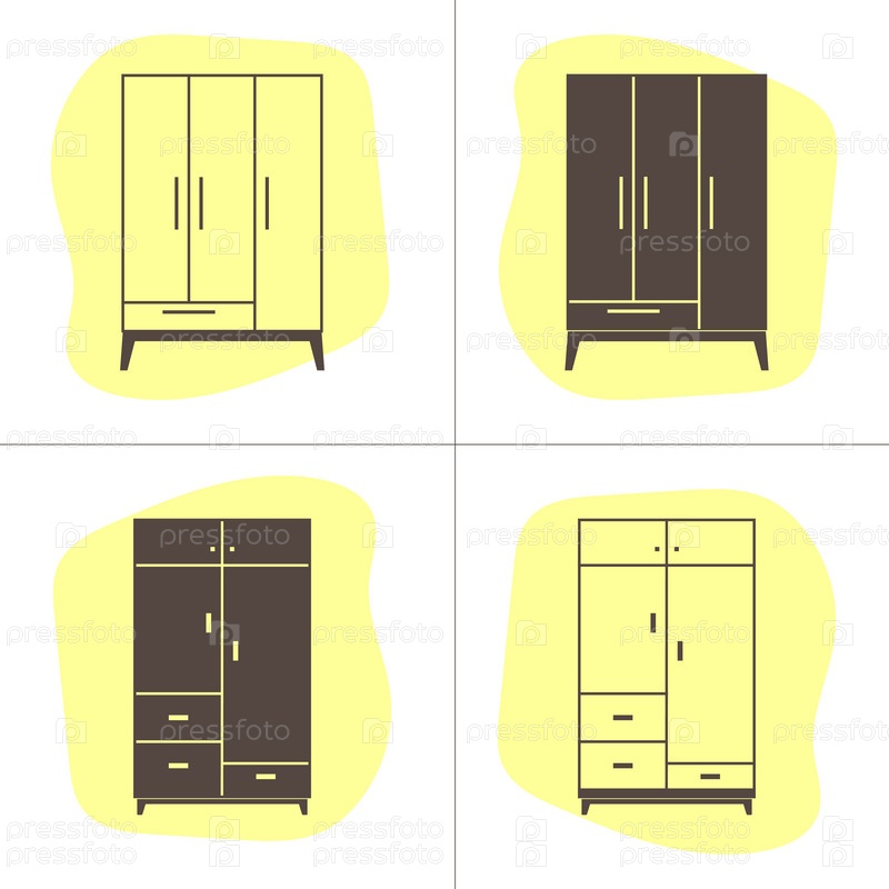 Набор иконок гардеробных шкафов на фоне абстрактных фигур