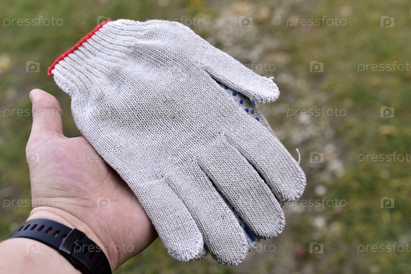 Белая тканевая перчатка в руке рабочего