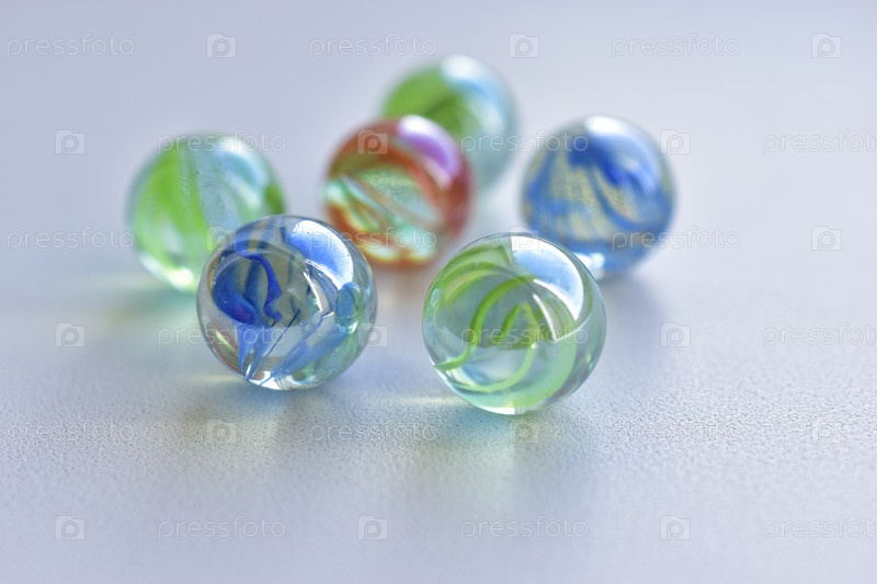 Декоративные разноцветные стеклянные шарики на белом фоне