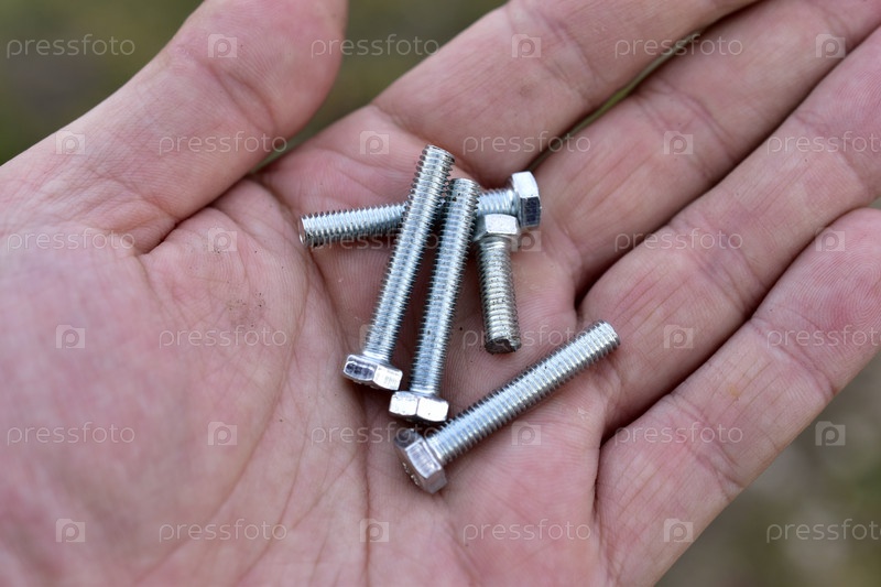 Блестящие железные болты в руке рабочего