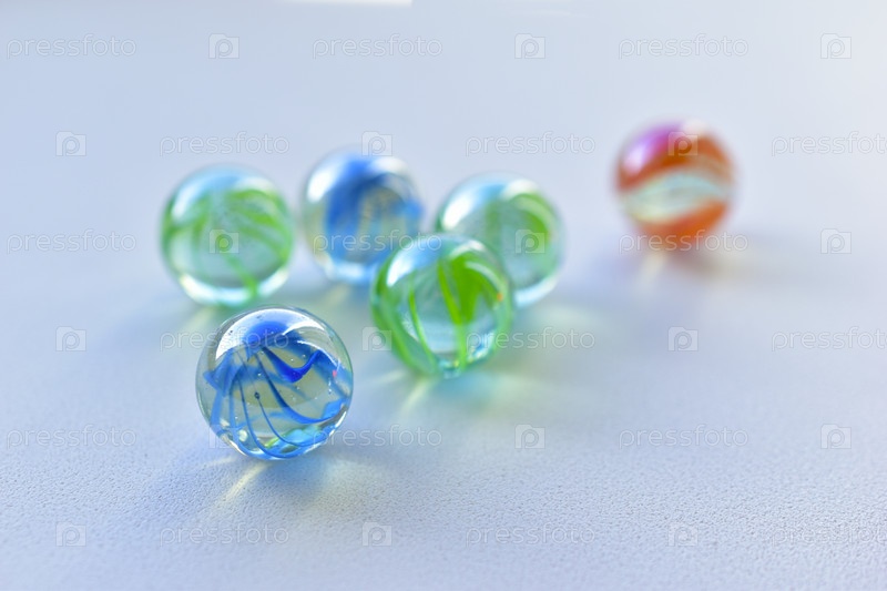 Декоративные разноцветные стеклянные шарики на белом фоне