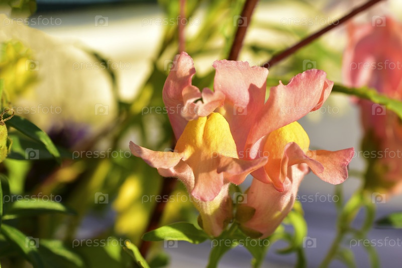 Красные яркие цветки львиного зева на солнце