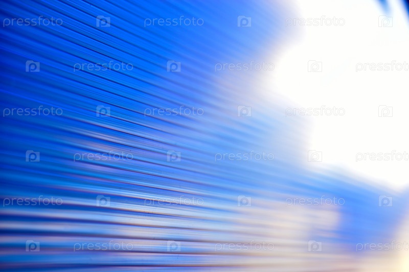 Синяя поверхность полосатого поликарбоната с отражением синей дали города