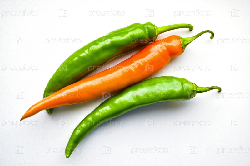 Желтый красный и зеленый перец на белом фоне