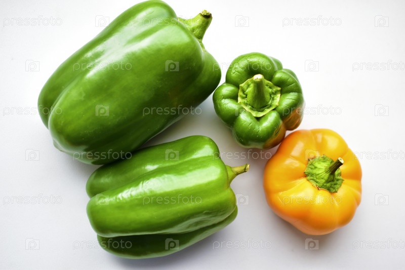 Желто-зеленый обычный перец на белом фоне