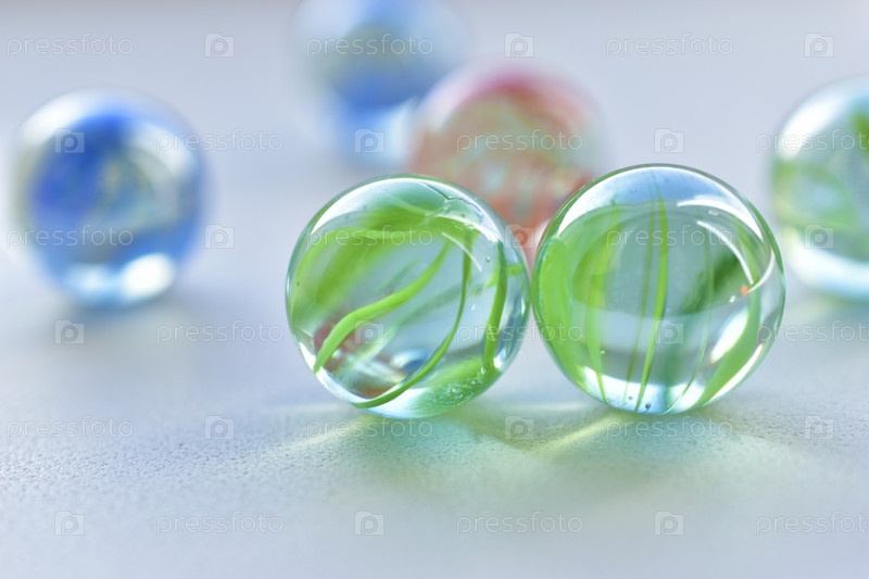 Декоративные разноцветные стеклянные шарики на белом фоне