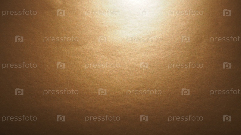 Желто-коричневая бумага с металлическим блеском, сверху светит подсветка. Абстрактный фон с градиентом. Скопируйте пространство. Текстура и неровности на поверхности. Блеск отдельных точек
