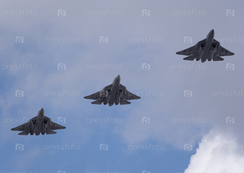 МОСКВА, РОССИЯ - 7 мая 2021 года: Авиапарад в Москве. Сухой Су-57 в небе на параде Победы во Второй мировой войне в Москве, Россия