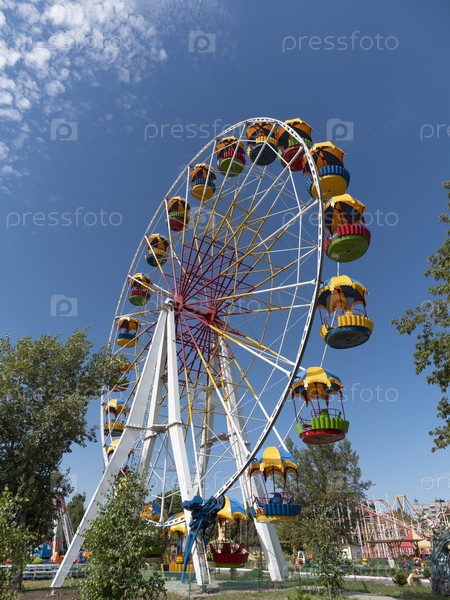 Красочное колесо обозрения на фоне неба