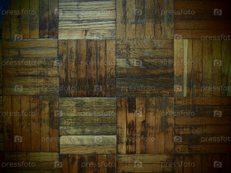 Поцарапанный паркет в комнате. Царапины, сколы и вмятины на полу. Паркет требует ремонта