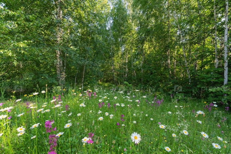 Цветущая поляна посреди весеннего леса