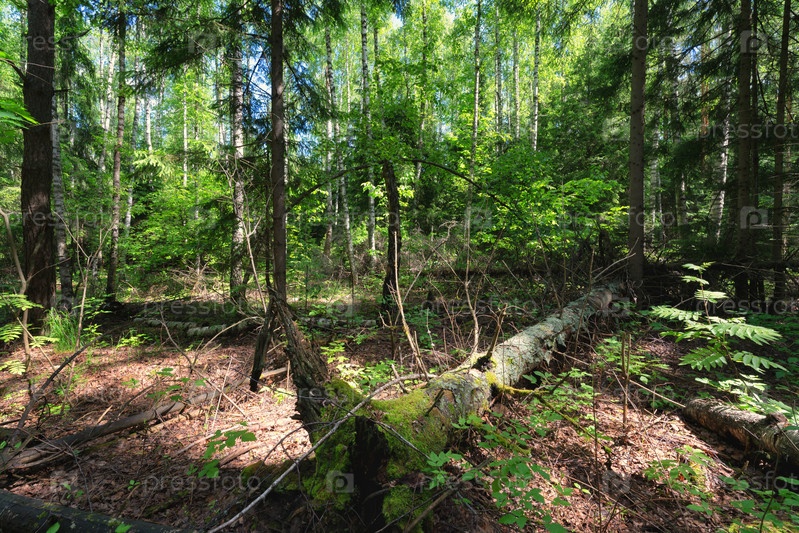 Старый лес ранней весной солнечным утром