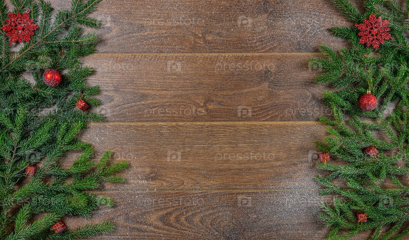 Рождественская открытка, рождественские поздравления, фон с елочными шарами и пряниками