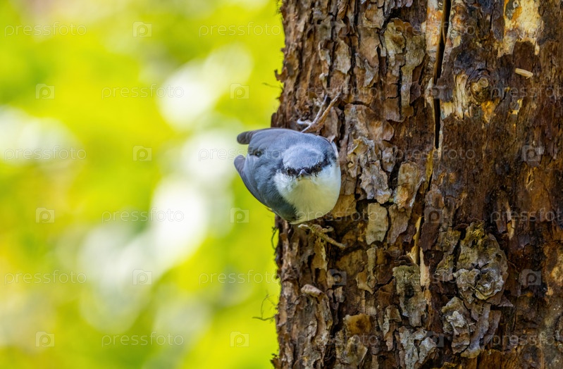Евразийская птица поползня висит на стволе старого дерева