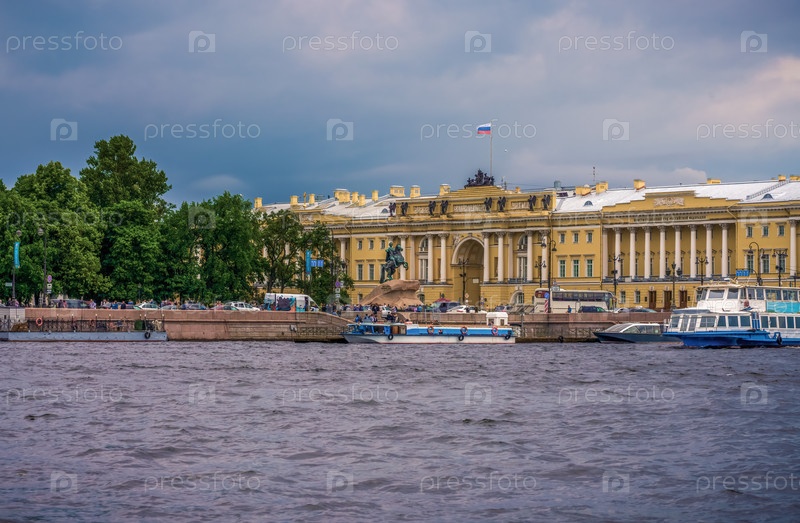 Вид с Невы на памятник Петру Первому и Конституционный суд РФ