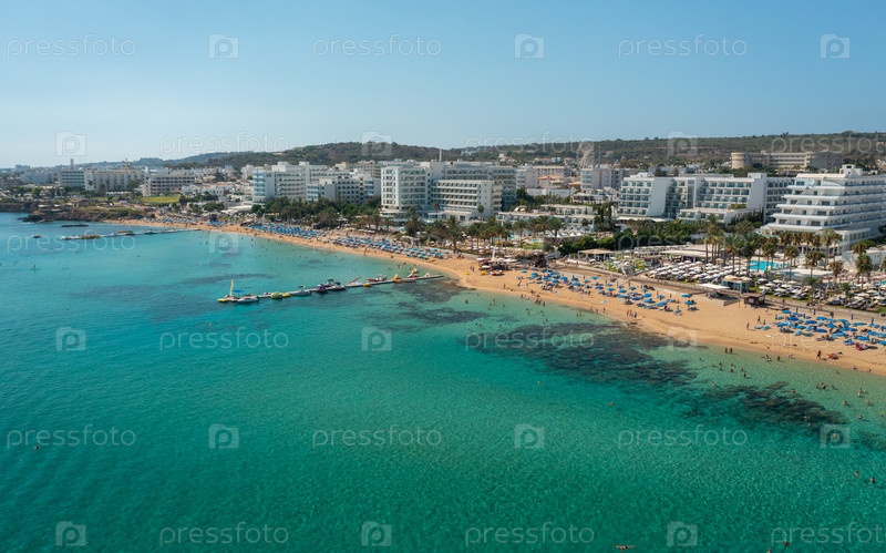 Пляжи и отели первой линии Средиземного моря в Протарасе, Кипр, вид с воздуха