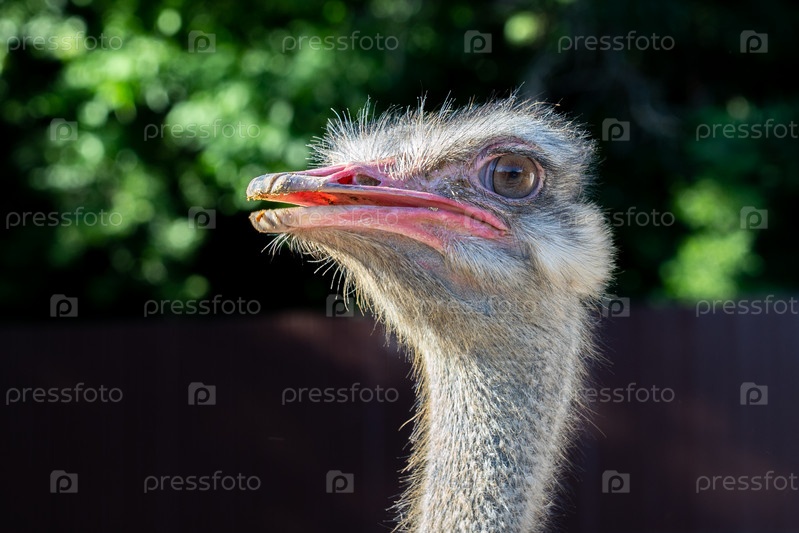 Портрет страуса, голова страуса крупным планом в фоновом свете