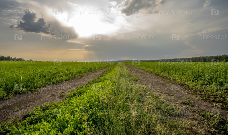 Грунтовая дорога через поле на закате