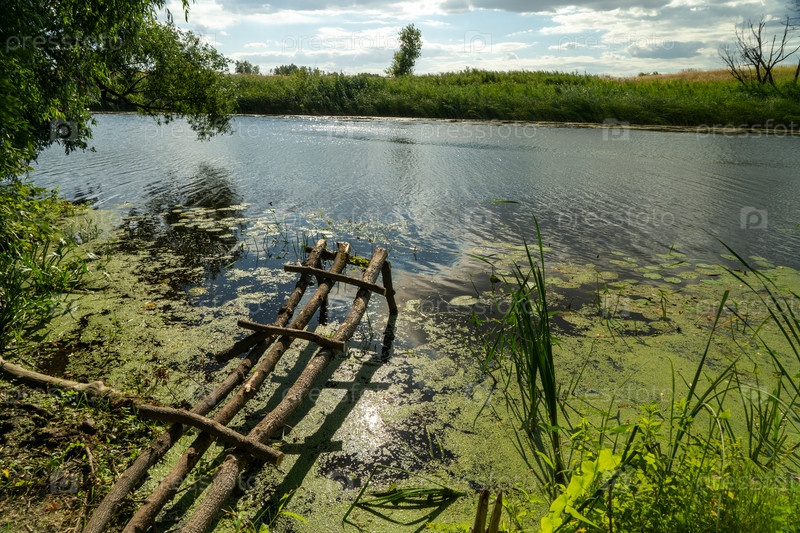 Река и деревянный мост для рыбаков