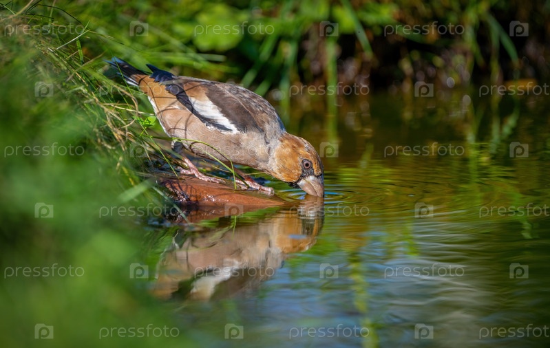 Ястребиная птица пьет воду из пруда крупным планом