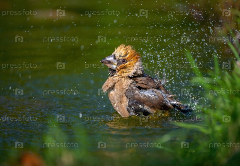 Ястребиная птица купается стоя в пруду крупным планом
