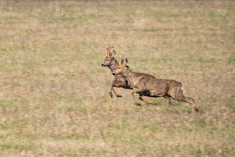 Дикие олени очень быстро прыгают по полю