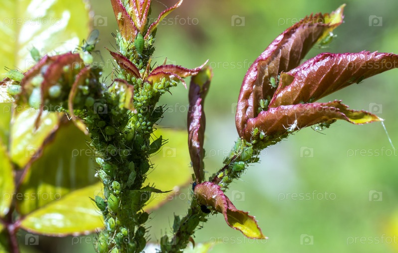 Тли на молодых ростках розового куста