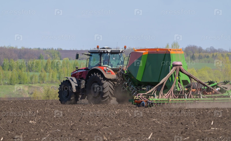 Трактор с сеялкой для посева сельскохозяйственных культур