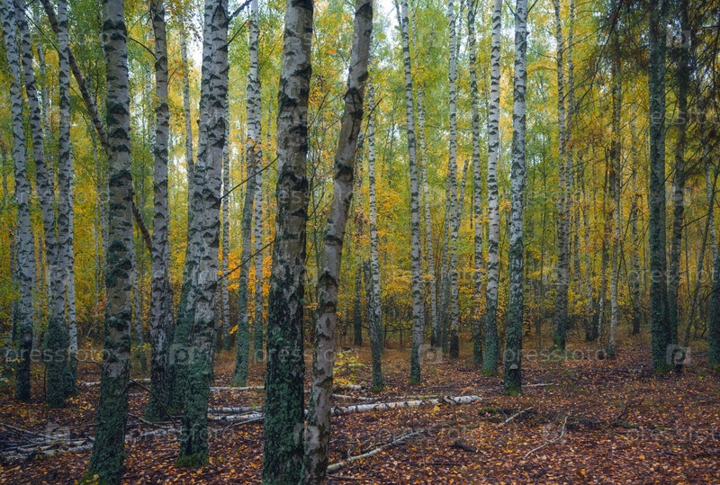 Стволы деревьев в осеннем лесу