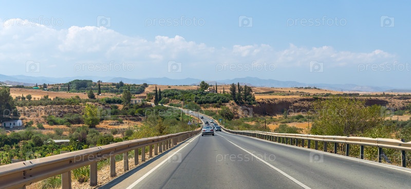 Автомагистраль с левосторонним движением, ведущая к горному массиву острова Кипр