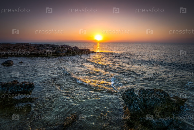 Красивый восход солнца над скалистым побережьем Средиземного моря
