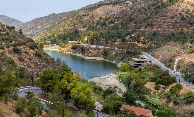 Водохранилище недалеко от горной деревни Ойкос в горном массиве Троодос на Кипре