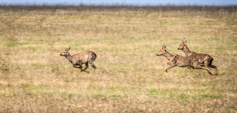 Дикие олени очень быстро прыгают по полю