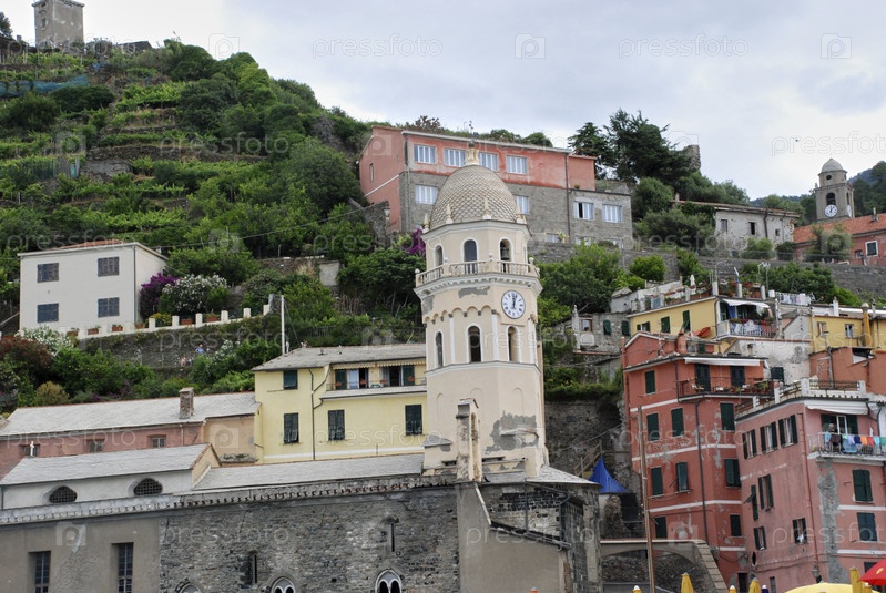 Прекрасный вид на Вернаццу. Это одна из пяти знаменитых красочных деревень национального парка Чинкве-Терре в Италии, подвешенная между морем и сушей на отвесных скалах