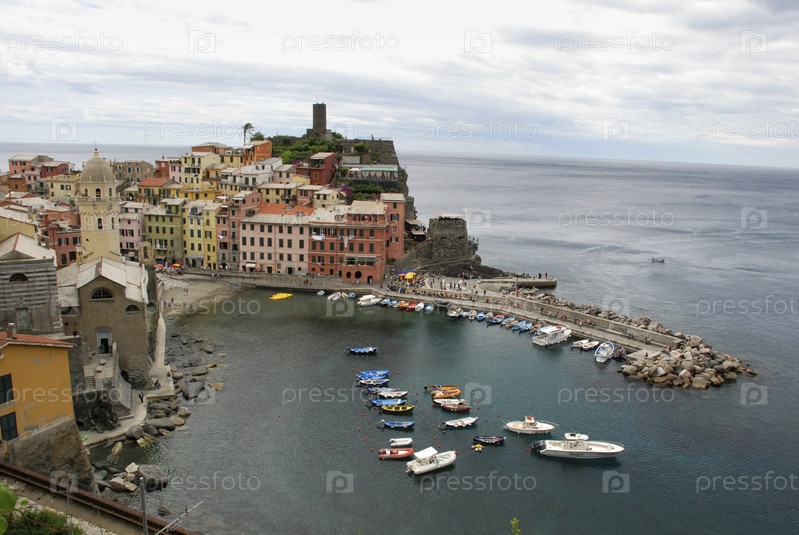 Прекрасный вид на Вернаццу. Это одна из пяти знаменитых красочных деревень национального парка Чинкве-Терре в Италии, подвешенная между морем и сушей на отвесных скалах. Лигурия регион Италии
